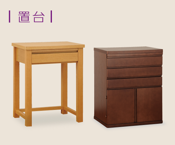 「チェスト型」、「デスク型」などお部屋と違和感のない家具調置台です。